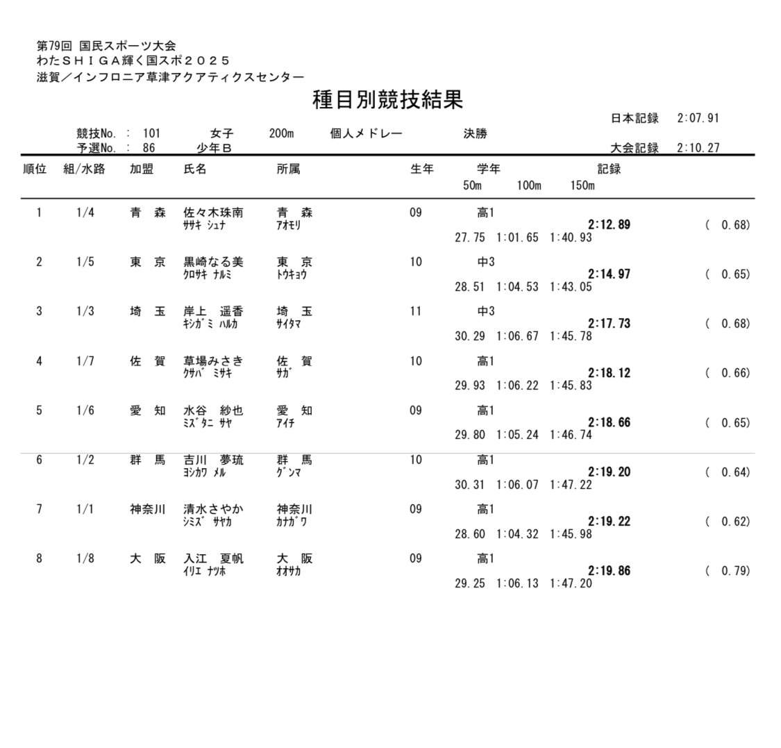 今回は、200個人メドレーで女子少年Bで私が行っている佐賀商業の子が4位となり、同じく佐賀商業の子で少年Aの200ブレで8位と