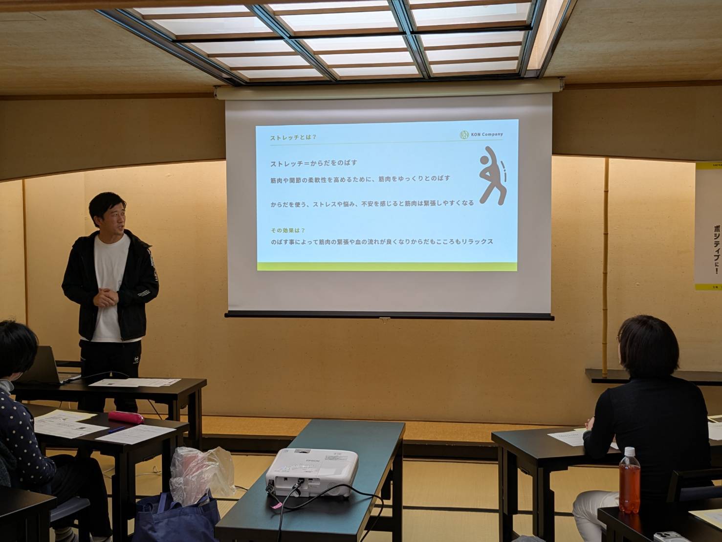 私が講師を務め、実際に体を動かしながら心身を整えるワークを行いました。